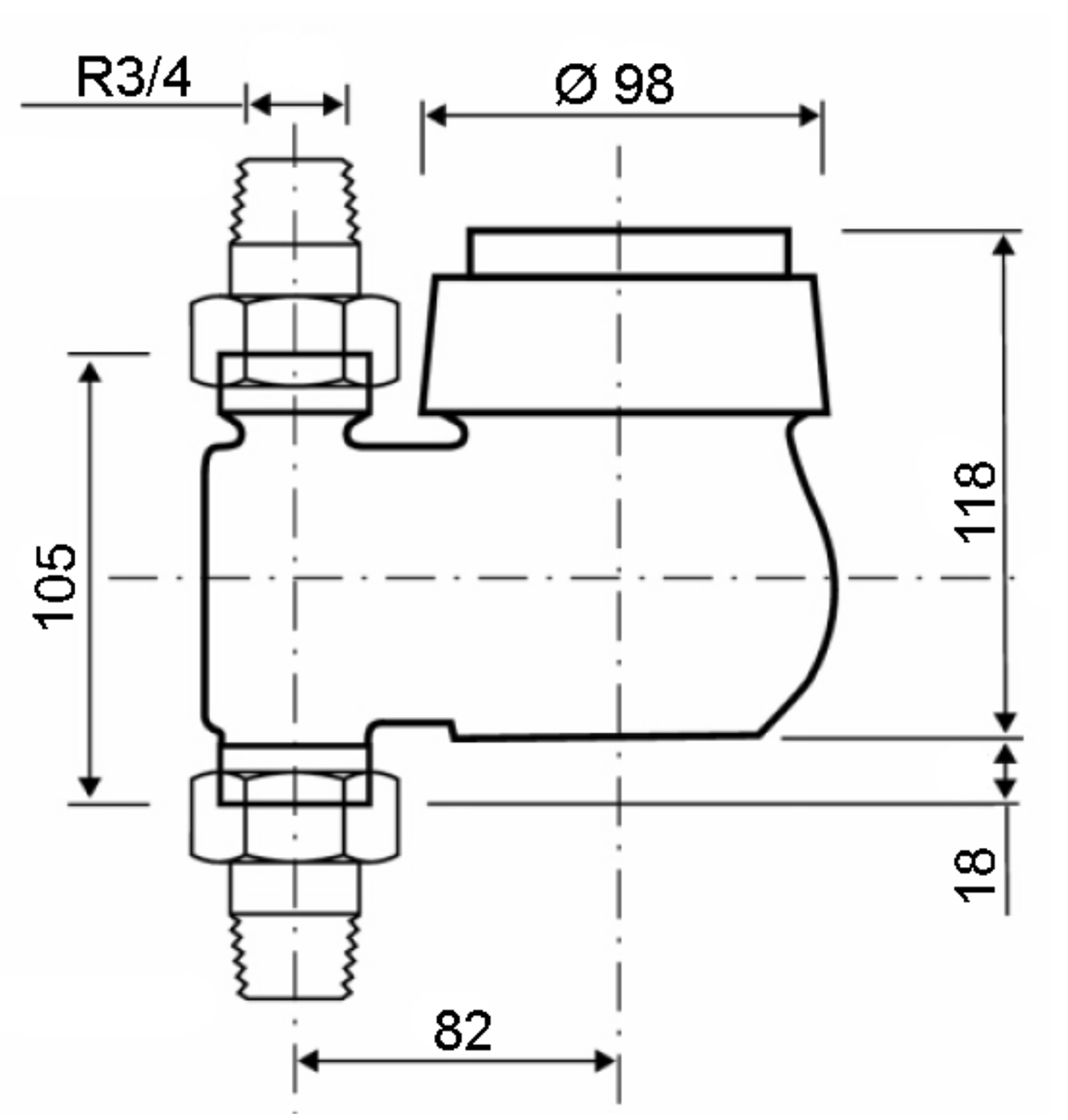 4,0 m³/h - G¾ AG / G1 Überwurf für Kaltwasser - Baulänge 105 mm
