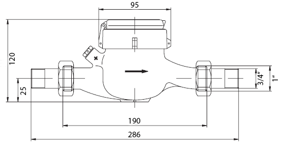Mehrstrahl-Hauswasserzähler - Nassläufer für Kaltwasser - 4,0 m³/h - G¾ AG / G1 Überwurf - Einbaulage Fallrohr