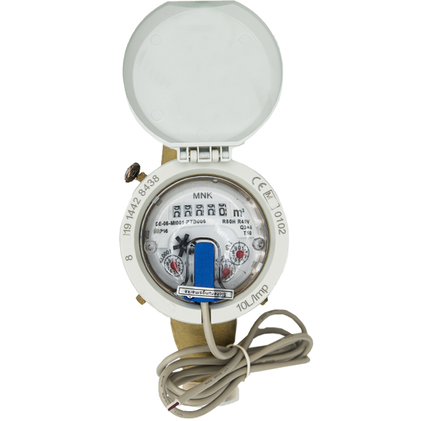 Mehrstrahl-Hauswasserzähler in Impulsausführung - Nassläufer für Kaltwasser - 4,0 m³/h - G¾ AG / G1 Überwurf - Einbaulage horizontal und Fallrohr