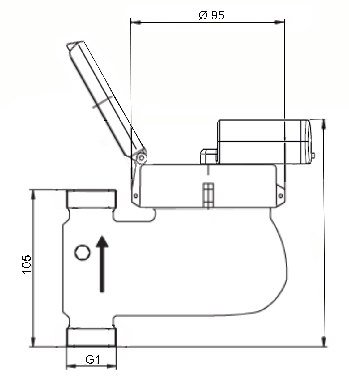 4,0 m³/h - G¾ AG / G1 Überwurf für Warmwasser - Baulänge 105 mm