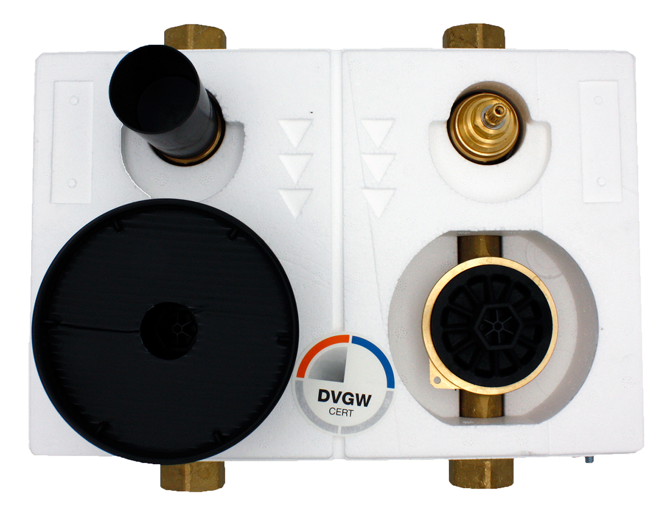 Miniblock-Duo G¾ IG - vorgefertigte Einheit aus FCKW-freiem Styropor inklusive Vormontage-Einbausatz für Wasserzähler mit Messkapsel Koax