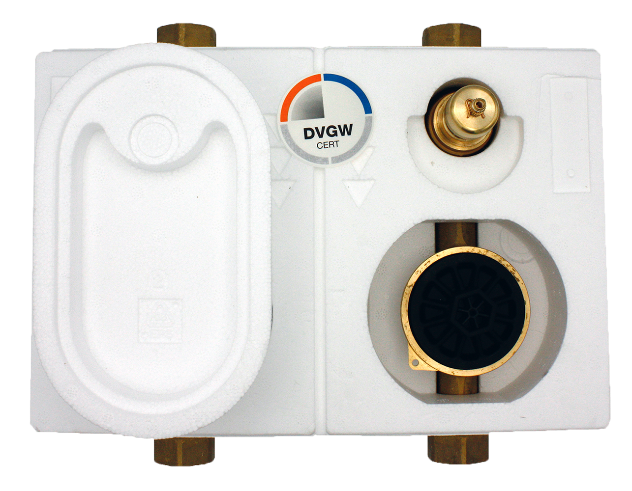 Miniblock-Duo G¾ IG - vorgefertigte Einheit aus FCKW-freiem Styropor inklusive Vormontage-Einbausatz für Wasserzähler mit Messkapsel Koax