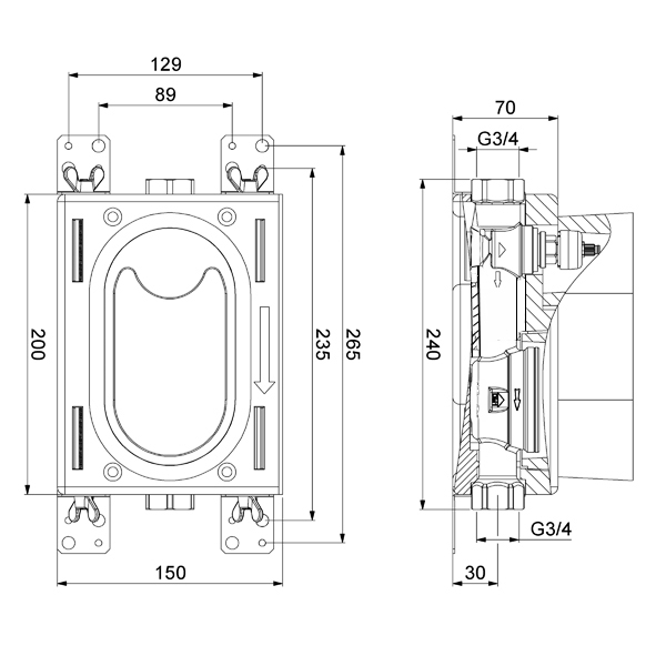 Miniblock-Mono G¾ IG - vorgefertigte Einheit aus FCKW-freiem Styropor inklusive Vormontage-Einbausatz für Wasserzähler mit Messkapsel TKS