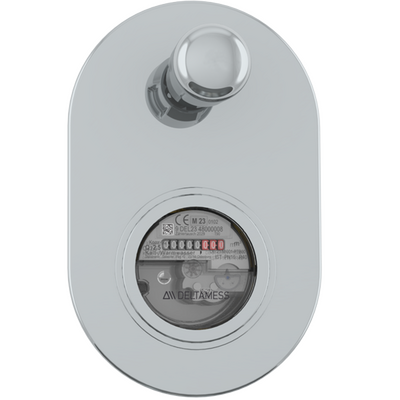 Messkapsel Koax Unterputz smart M Miniblock für Kaltwasserzähler und Warmwasserzähler. Funkvorbereitet, inklusive einteiliger Chromgarnitur sowie verchromtem Ventilgriff.