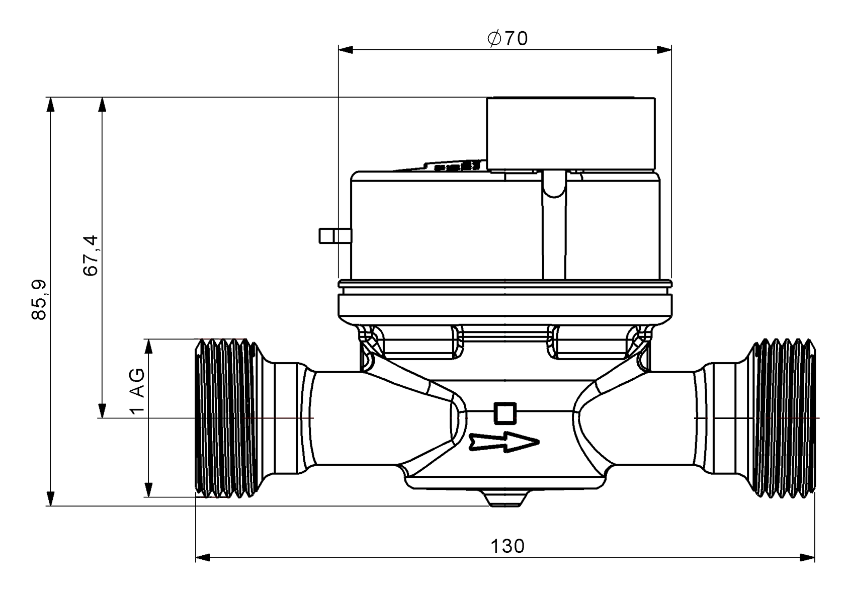 Aufputzwasserzähler T90 smart M OMS G1 mit integriertem Funk für Kaltwasserzähler und Warmwasserzähler, Baulänge 130 mm