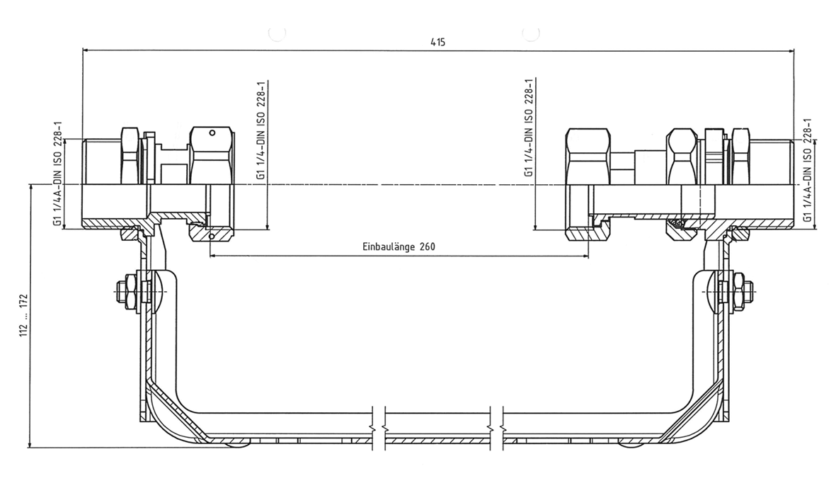 Wasserzählerbügel Q3 10,0 m3/h - G1¼ AG x G1¼ Überwurf - Baulänge 260 mm - Einbaulage Horizontal
