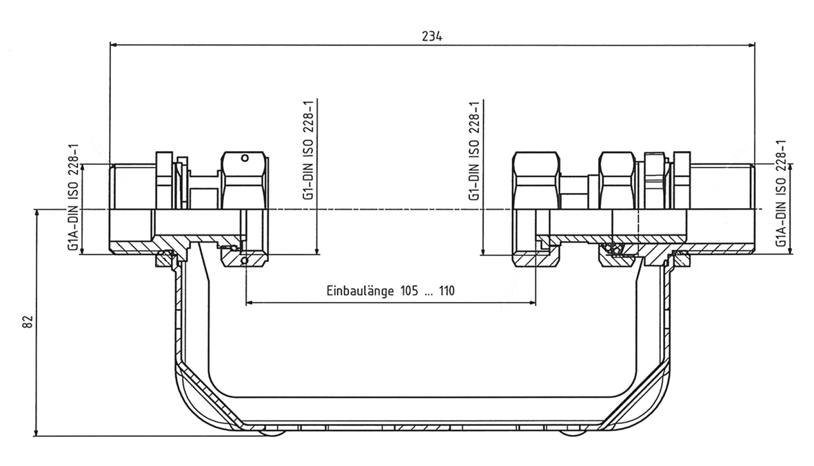 Wasserzähler-Anschlussgarnitur mit Plombiermöglichkeit aus Edelstahl, Werkstoff 1.4301.