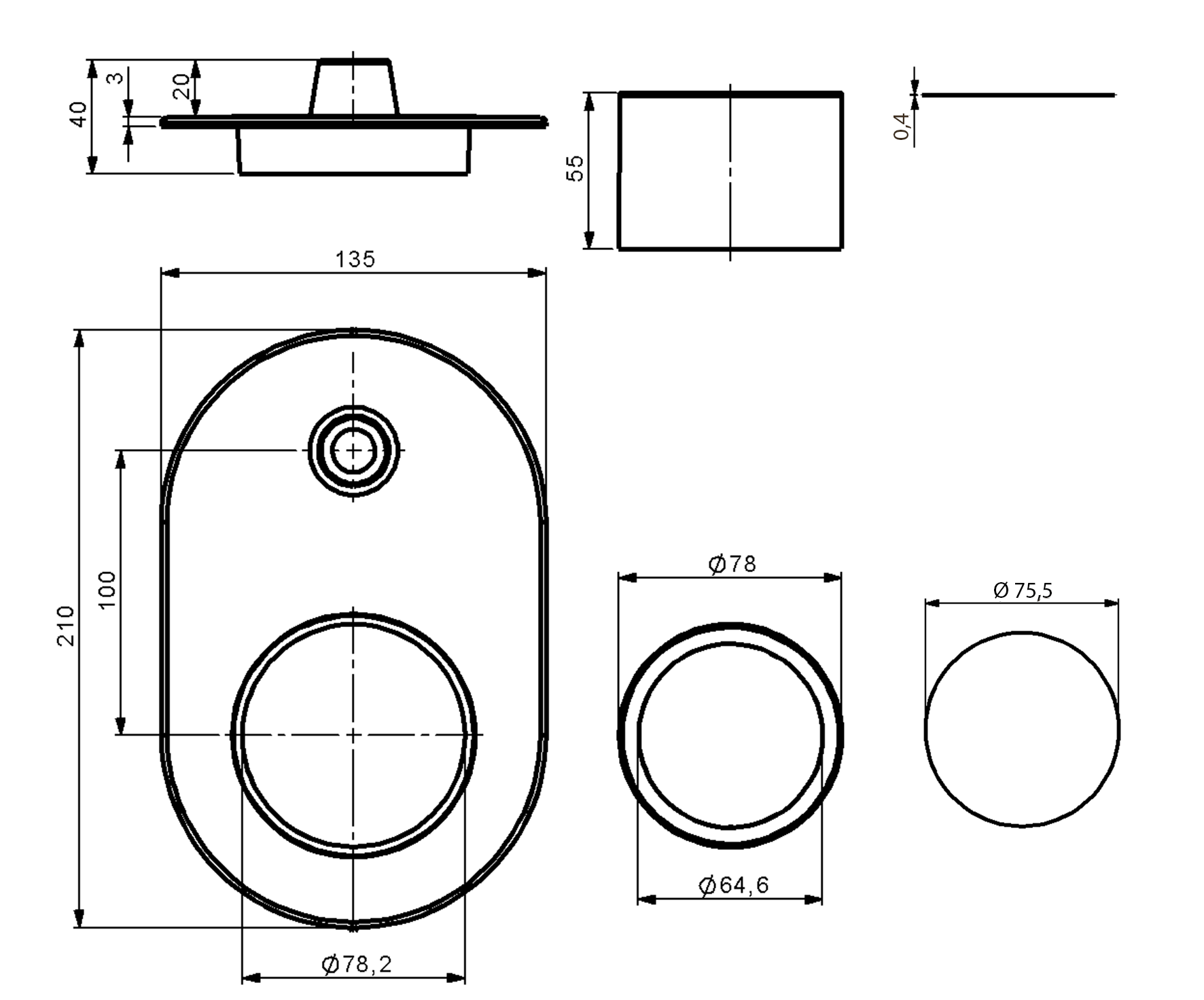 Zubehör für Miniblock Koax G2 mit einteiliger, ovaler Wandabdeckrosette