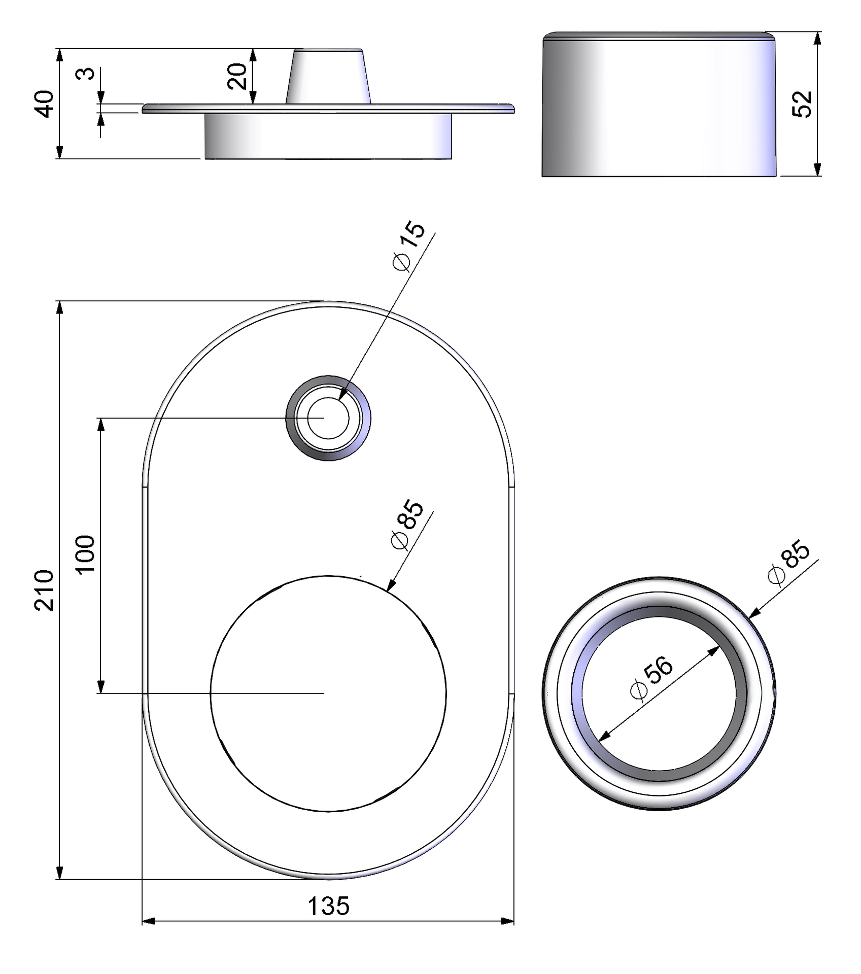 Zubehör für Miniblock TKS und Unterputztraverse TKS - mit einteiliger, ovaler Wandabdeckrosette